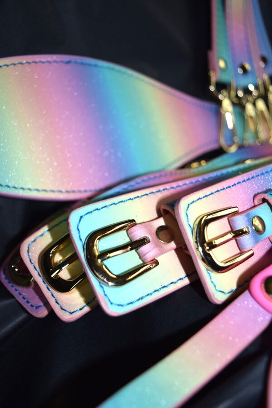 Real leather rainbow set with restraints and BDSM accessories